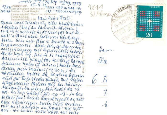 73929376 alte Postkarte St Maergen Ohmenhof postalisch gelaufen Erhaltung siehe scans [FriedD77] KatCode: 11110008315094