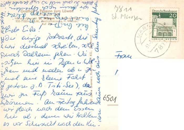 73929366 alte Postkarte St Maergen Panorama Kirche Gasthof Zum Loewen Gaststube Terrasse postalisch gelaufen Erhaltung siehe scans [FriedD77] KatCode: 11110008315094