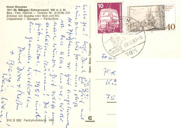 73929947 alte Postkarte St Maergen Panorama Kirche Hotel Hirschen postalisch gelaufen Erhaltung siehe scans [FriedD77] KatCode: 11110008315094