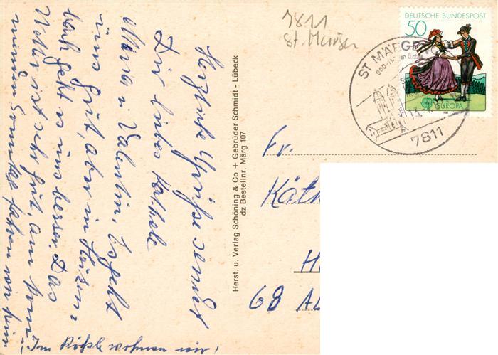73929368 alte Postkarte St Maergen Wallfahrtskirche Feldbergblick Teilansicht Hotel Hirschen Hotel Krone Neuhaeusle Roessle Hotel Loewen postalisch gelaufen Erhaltung siehe scans [FriedD77] KatCode: 11110008315094