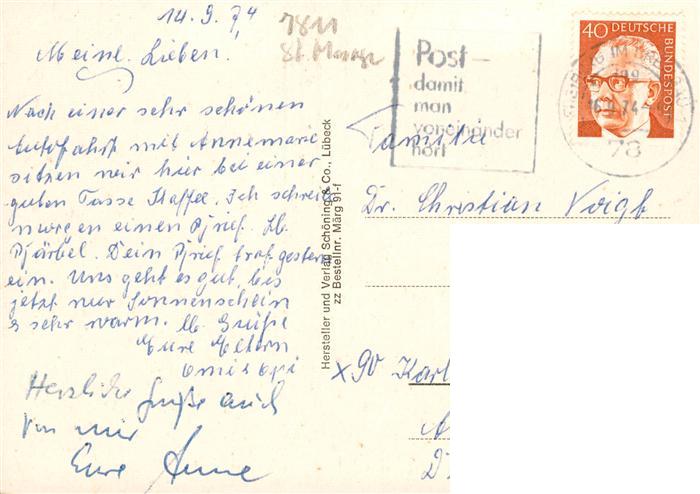 73929811 alte Postkarte St Maergen Wallfahrtskirche Klosterportal Kloster Rankmuehle Hotel Hirschen Panorama Teilansicht Sonne Neuhaeusle Gasthaus Roessle Hotel Hirschen Hotel Loewen postalisch gelaufen Erhaltung siehe scans [FriedD77] KatCode: 11110008315094