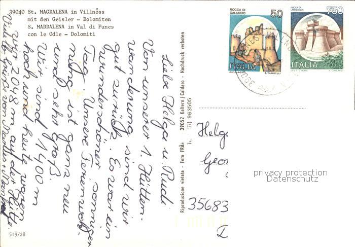old postcard St Magdalena Gsies Ortsansicht mit Kirche Villnoesstal Dolomiten postalisch gelaufen Erhaltung siehe scans