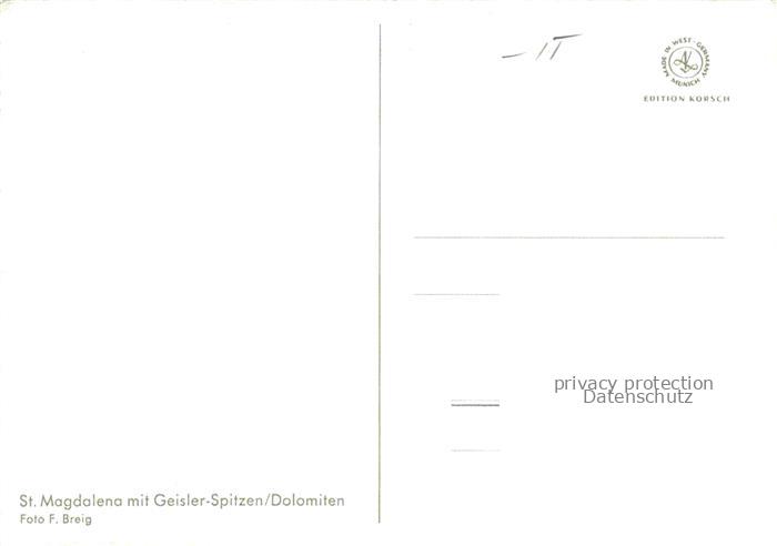 74010161 St Magdalena Villnoess Suedtirol IT Dolomiten mit Geisler Spitzen postalisch nicht gelaufen Erhaltung siehe scans [WerneD78] KatCode: 11240