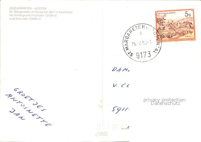 72093049 alte Postkarte St Margareten Rosental mit Hoch und Kleinobir postalisch gelaufen Erhaltung siehe scans KatCode: 11390211020428