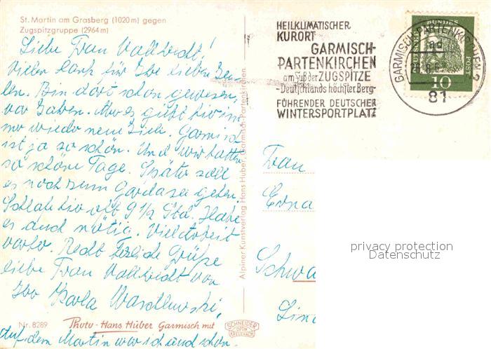 72823356 alte Postkarte St Martin Grasberg Berggaststaette Terrasse gegen Zugspitzgruppe Wettersteingebirge postalisch gelaufen Erhaltung siehe scans [FriedD77] KatCode: 11110009180117
