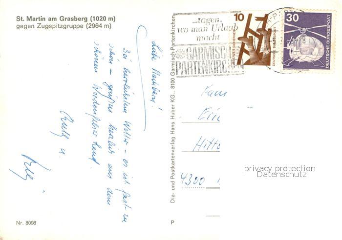 73670841 alte Postkarte St Martin Grasberg mit Zugspitzgruppe und Alpspitze postalisch gelaufen Erhaltung siehe scans [WerneD78] KatCode: 11110009180117