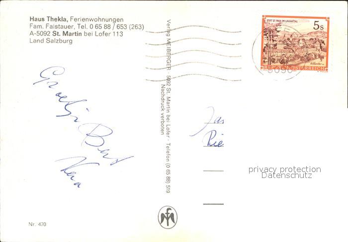 72493806 alte Postkarte St Martin Lofer Ferienwohnungen Haus Thekla Loferer Steinberge postalisch gelaufen Erhaltung siehe scans KatCode: 11390322050627