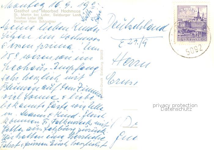 13326891 alte Postkarte St Martin Lofer Gasthof Moorbad Hochmoos postalisch gelaufen Erhaltung siehe scans [KathaD81] KatCode: 11390322050627