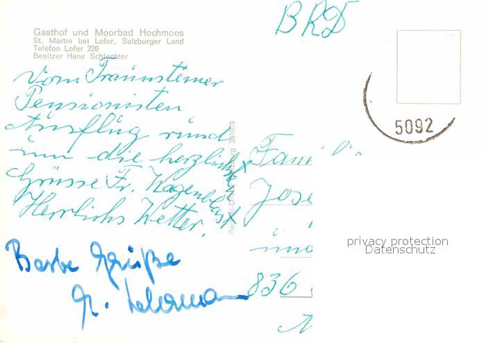 72673392 alte Postkarte St Martin Lofer Gasthof und Moorbad Hochmoos Alpenpanorama postalisch gelaufen Erhaltung siehe scans [FriedD77] KatCode: 11390322050627