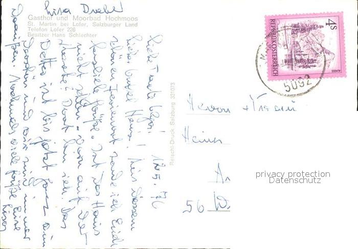 72213828 alte Postkarte St Martin Lofer Gasthof und Moorbad Hochmoos Terrasse postalisch gelaufen Erhaltung siehe scans KatCode: 11390322050627