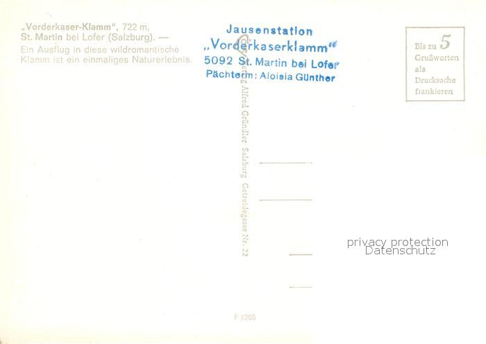 73041500 St Martin Lofer Jausenstation Vorderkaserklamm postalisch nicht gelaufen Erhaltung siehe scans [NatalD47] KatCode: 11390322050627