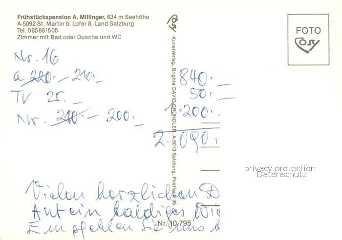73219511 St Martin Lofer Pension Millinger Ortsmotiv mit Kirche postalisch nicht gelaufen Erhaltung siehe scans [FriedD77] KatCode: 11390322050627
