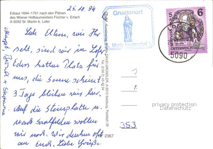 72453681 alte Postkarte St Martin Lofer Wallfahrtskirche Maria Kirchental Inneres postalisch gelaufen Erhaltung siehe scans KatCode: 11390322050627