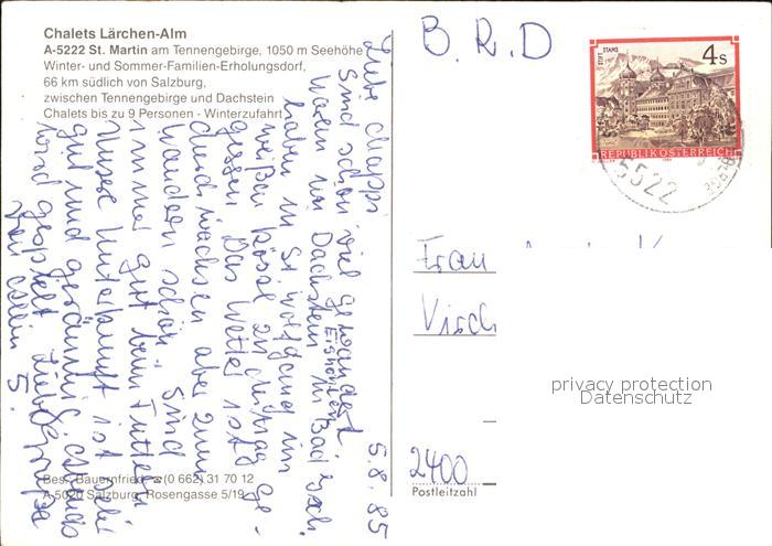 72420146 alte Postkarte St Martin Muehlkreis Chalets Laerchen-Alm postalisch gelaufen Erhaltung siehe scans KatCode: 11390313041330