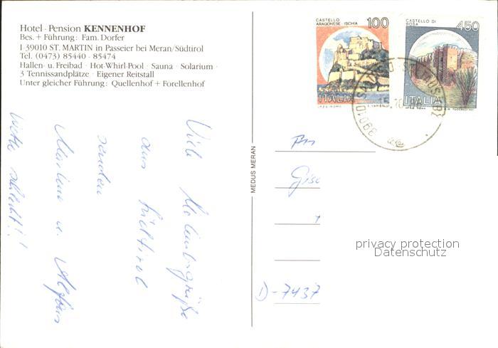 old postcard St Martin Passeiertal Hotel Pension Kennenhof postalisch gelaufen