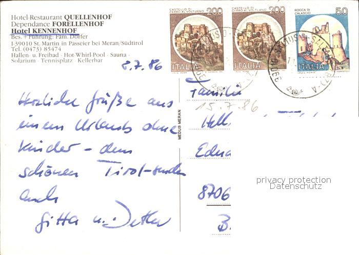 old postcard St Martin Passeiertal Hotel Restaurant Quellenhof postalisch gelaufen Erhaltung siehe scans