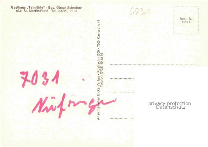 74047404 St Martin Pfalz Gasthaus Talmuehle Innenansicht Kirche Ortspanorama postalisch nicht gelaufen Erhaltung siehe scans [FriedD77] KatCode: 11110007337070