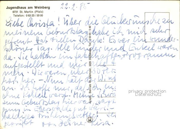72106810 St Martin Pfalz Jugendhaus am Weinberg postalisch nicht gelaufen Erhaltung siehe scans KatCode: 11110007337070