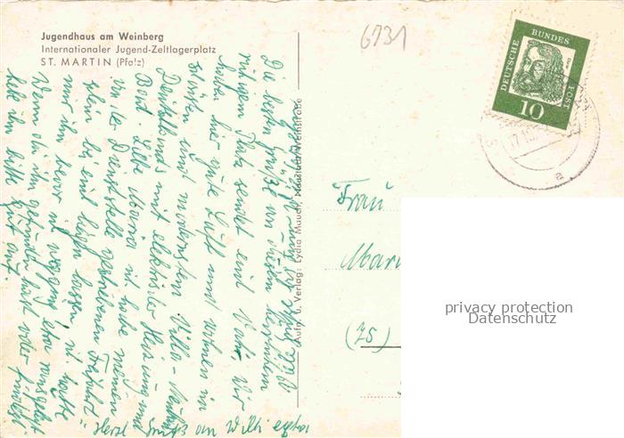 74047388 alte Postkarte St Martin Pfalz Jugendhaus am Weinberg Jugend-Zeltlagerplatz postalisch gelaufen Erhaltung siehe scans [FriedD77] KatCode: 11110007337070
