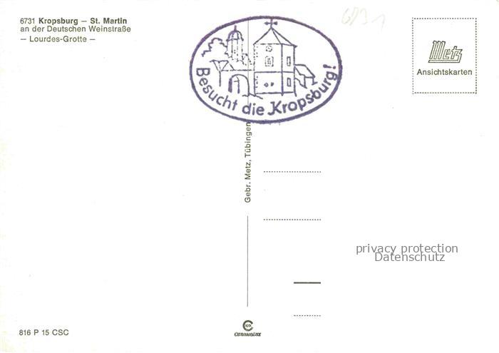 74046739 St Martin Pfalz Kropsburg Lourdes Grotte postalisch nicht gelaufen Erhaltung siehe scans [WerneD78] KatCode: 11110007337070