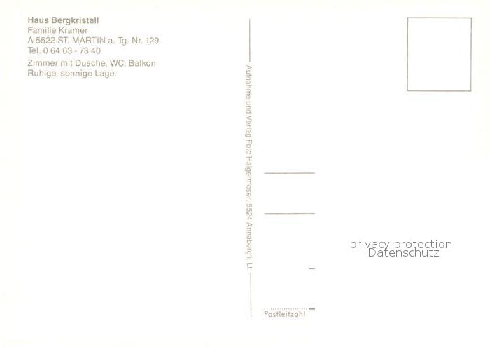 73167274 St Martin Tennengebirge Gaestehaus Pension Bergkristall postalisch nicht gelaufen Erhaltung siehe scans [FriedD77] KatCode: 11390322050412