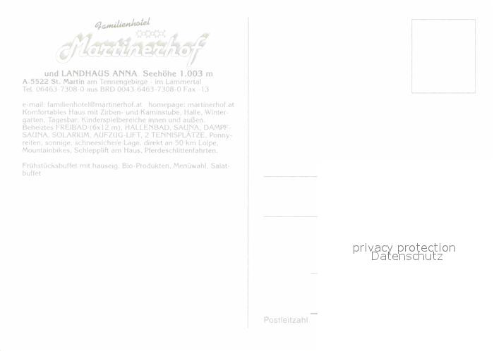 72812275 St Martin Tennengebirge Hotel Martinerhof Landhaus Anna postalisch nicht gelaufen Erhaltung siehe scans [NatalD47] KatCode: 11390322050412