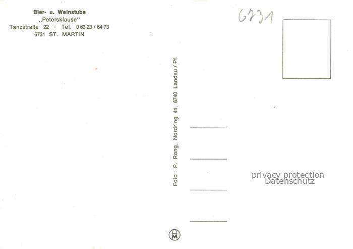 74046853 St Martin Weinstrasse Pfalz Bier und Weinstube Petersklause Gastraeume postalisch nicht gelaufen Erhaltung siehe scans [WerneD78] KatCode: 11110007337070