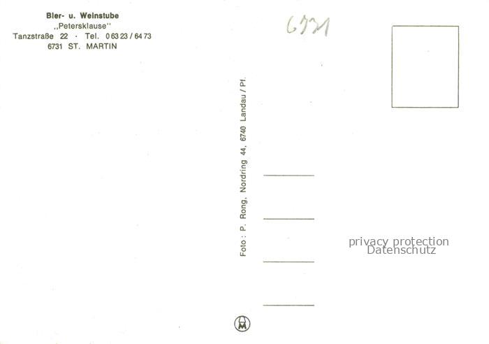 74046856 St Martin Weinstrasse Pfalz Bier und Weinstube Petersklause Gastraeume postalisch nicht gelaufen Erhaltung siehe scans [WerneD78] KatCode: 11110007337070
