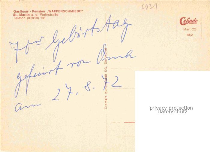74046818 St Martin Weinstrasse Pfalz Gasthaus Pension Wappenschmiede postalisch nicht gelaufen Erhaltung siehe scans [WerneD78] KatCode: 11110007337070