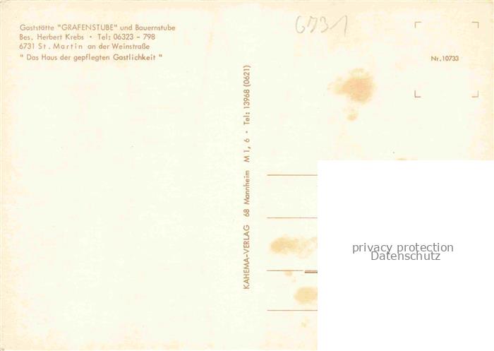 74046718 St Martin Weinstrasse Pfalz Gaststaette Grafenstube mit Bauernstube postalisch nicht gelaufen Erhaltung siehe scans [WerneD78] KatCode: 11110007337070