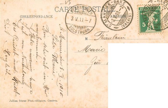 13908444 alte Postkarte St Maurice Valais VS et la Dent du Midi postalisch gelaufen Erhaltung siehe scans [FriedD77] KatCode: 11470230735588