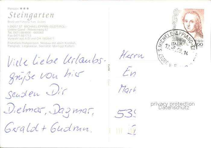 old postcard St Michael-Eppan Pension Steingarten postalisch gelaufen Erhaltung siehe scans