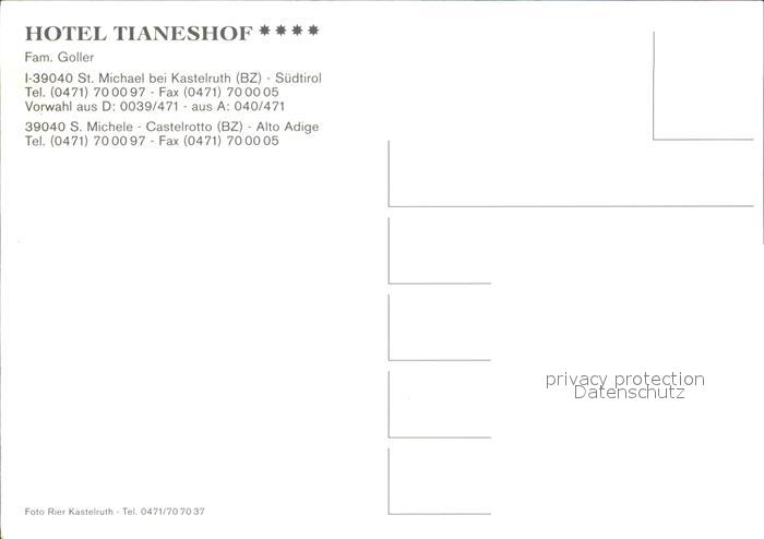 72609694 St Michael Kastelruth Suedtirol Hotel Tianeshof postalisch nicht gelaufen Erhaltung siehe scans [LiesaD40] KatCode: 11390