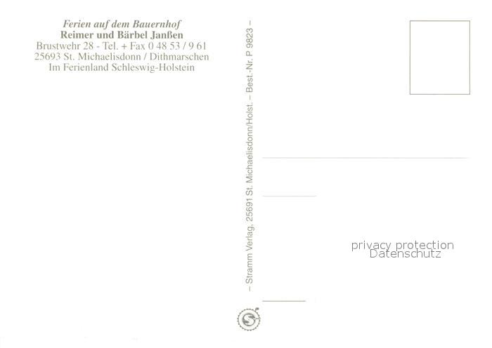 73205759 St Michaelisdonn Ferienhof Janssen postalisch nicht gelaufen Erhaltung siehe scans [PaolaD17] KatCode: 11110001051097