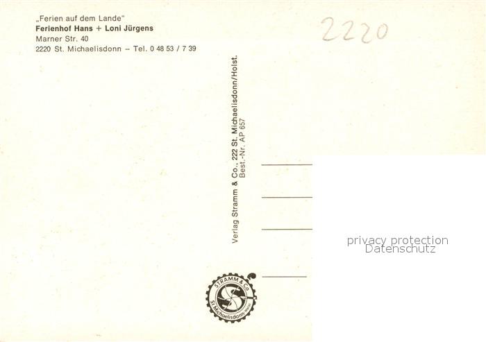 73641905 St Michaelisdonn Ferienhof Juergens postalisch nicht gelaufen Erhaltung siehe scans [WerneD78] KatCode: 11110001051097