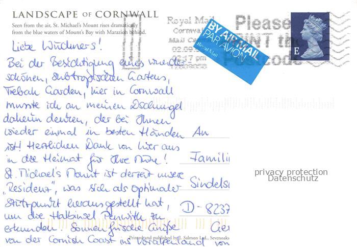 74005685 old postcard St Michaels Mount Cornwall UK Fliegeraufnahme postalisch gelaufen Erhaltung siehe scans [WerneD78] KatCode: 11570UKK2K23UD