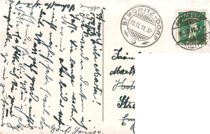 13920358 alte Postkarte St Moritz Dorf GR Panorama mit Pension Wantenstein und Schlossruine postalisch gelaufen Erhaltung siehe scans [FriedD77] KatCode: 11470100335240