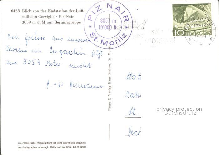 11837066 alte Postkarte St Moritz GR Blick v. d. Endstation Luftseilbahn Corviglia Piz Nair Palue Roseg Sellagruppe Corvatsch postalisch gelaufen KatCode: 11470100335240