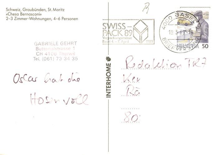 13884221 alte Postkarte St Moritz GR Chesa Bernasconi Winterpanorama postalisch gelaufen Erhaltung siehe scans [FriedD77] KatCode: 11470100335240