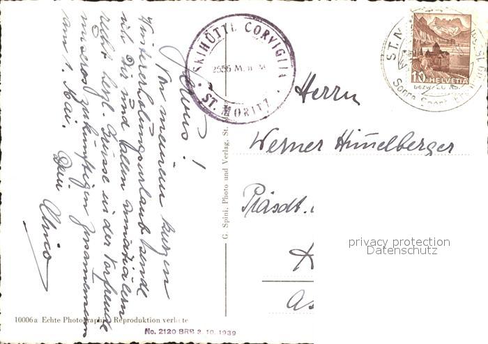 11649122 alte Postkarte St Moritz GR Corvigla Ski Huette postalisch gelaufen Erhaltung siehe scans KatCode: 11470100335240