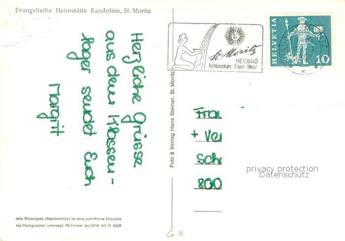 13728393 alte Postkarte St Moritz GR Ev Heimstaette Randolins postalisch gelaufen Erhaltung siehe scans [WerneD78] KatCode: 11470100335240