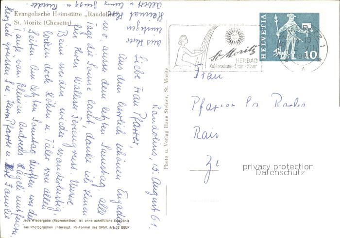 12031717 alte Postkarte St Moritz GR Evangelische Heimstaette Randolins Alpen postalisch gelaufen Erhaltung siehe scans KatCode: 11470100335240