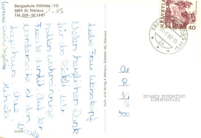 13760830 alte Postkarte St Niklaus VS Bergschule Rittinen postalisch gelaufen Erhaltung siehe scans [LiesaD40] KatCode: 11470230750752