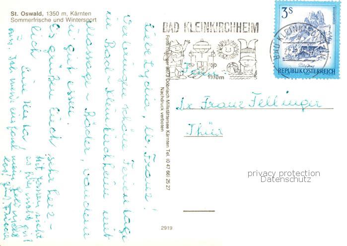 73856044 alte Postkarte St Oswald Kaernten AT Dorfpartie Kirche Pferdefuhrwerk Sommerfrische und Wintersport postalisch gelaufen Erhaltung siehe scans [FriedD77] KatCode: 11390212020601