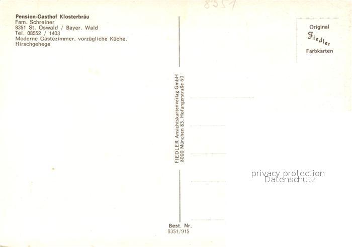 73119061 St Oswald Sankt Oswald-Riedlhuette Pension Gasthof Klosterbraeu postalisch nicht gelaufen Erhaltung siehe scans [KathaD81] KatCode: 11110009272143