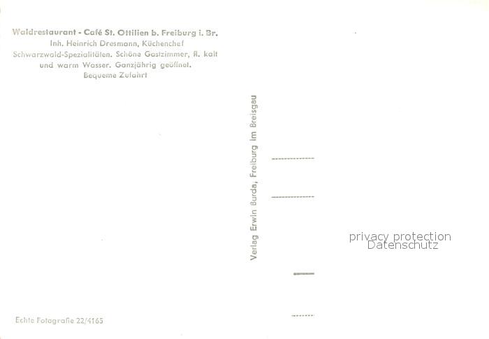 73203507 St Ottilien Freiburg Waldrestaurant Cafe Wallfahrtsort Schwarzwaldblick postalisch nicht gelaufen Erhaltung siehe scans [FriedD77] KatCode: 11110008311000