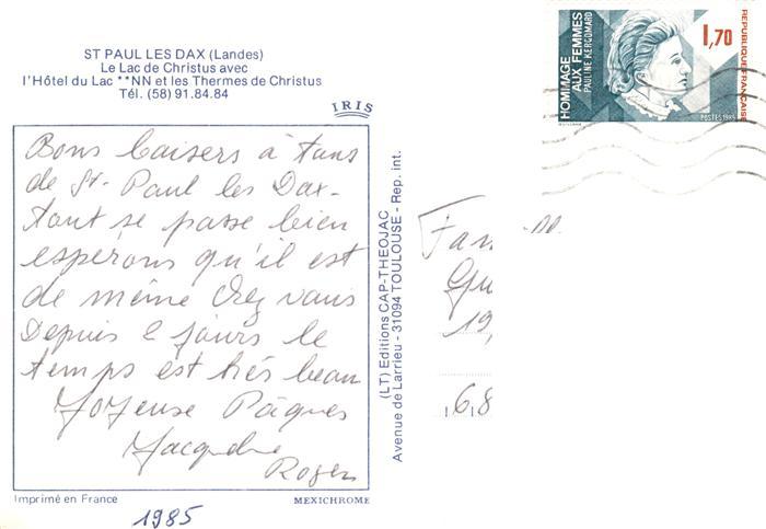 13948969 St-Paul-les-Dax Hotel du Lac Le Lac de Christus postalisch gelaufen Fliegeraufnahme Erhaltung siehe scans [WerneD78] Fliegeraufnahme carte postale Wern Katcode 11170040140279