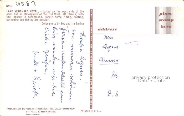 72132695 St Paul Minnesota Lake McDonald Hotel postalisch nicht gelaufen Erhaltung siehe scans KatCode: 14140