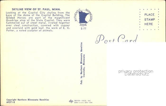 72542226 St Paul Minnesota Skyline Stadtzentrum Gilded Horse postalisch nicht gelaufen Erhaltung siehe scans [KathaD75 kv015box] KatCode: 14140