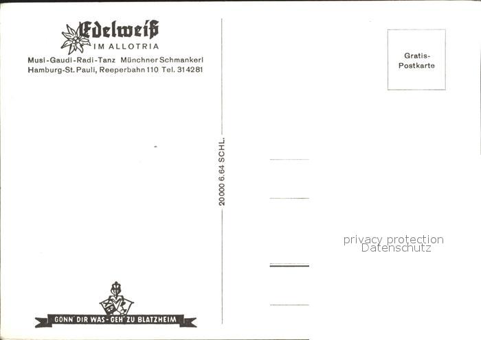 72356794 St Pauli Edelweiss im Allotria Restaurant postalisch nicht gelaufen Erhaltung siehe scans KatCode: 11110002000000